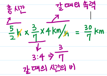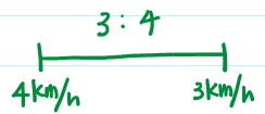 4km/h로 이동할 때와, 3km/h로 이동할 때의 비가 3:4라는 것입니다.