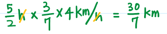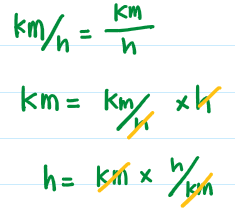 km를 구하고 싶으면, km/h에 h를 곱해줘서, h를 지워준다.