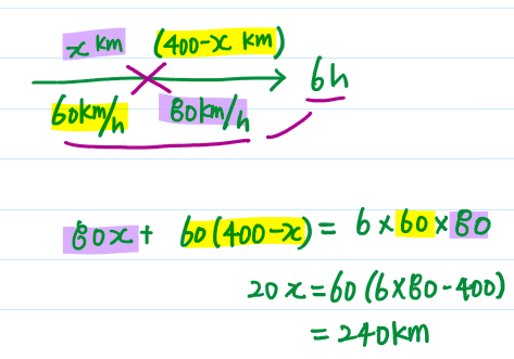 60km/h로 갈 때의 거리를 구하는 문제이기 때문에,