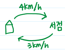 갈 때는 시속 4km로 걸어가고