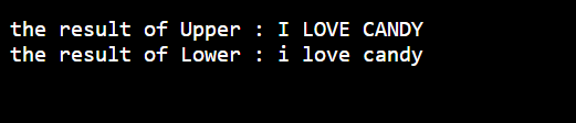 i love Candy를 대문자로만, 소문자로만 출력했다.