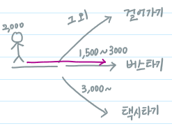 근데 만약에 내가 3,000 원 이상이 있다면 택시를 탈 수 있다.