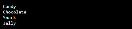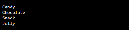 String[] food = {"Candy", "Chocolate", "Snack", "Jelly"};