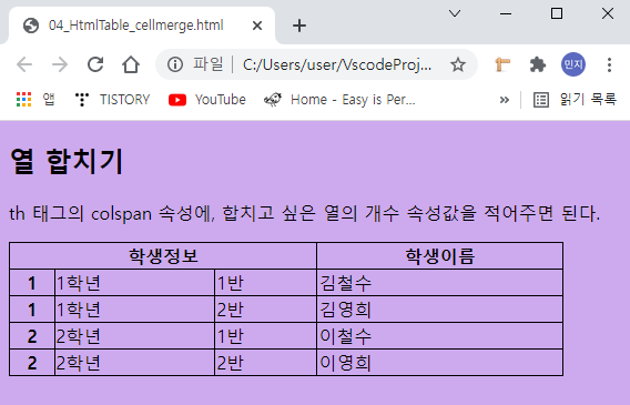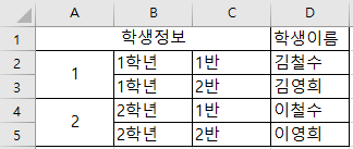 셀이 위아래(행방향), 양옆(열방향)으로 병합되어있는걸 볼 수 있다.