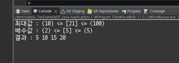 System.out.printf("배수값 : (%d) <= [%d] <= (%d)\n",MIN_MULTIPLE,multiple,MAX_MULTIPLE);