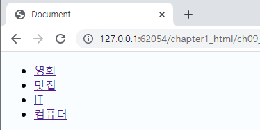이렇게 <nav>태그 안에다가 <ul>,<li> 태그들로 리스트를 만들 수 있다.