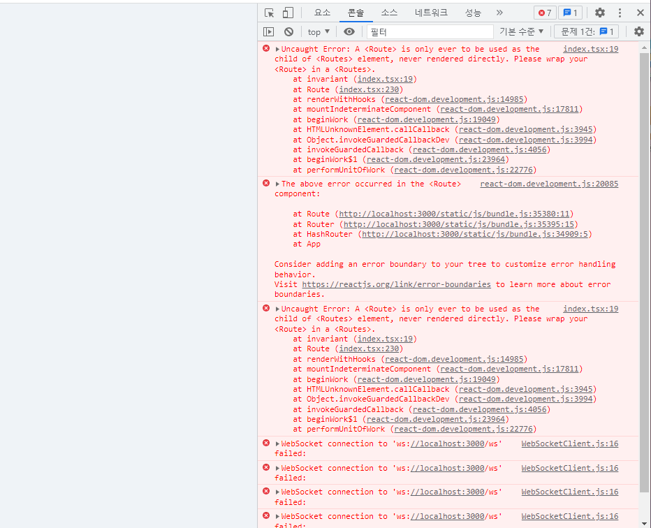 이 애러메세지가 시키는대로, <Route></Route>로 표기했는데도 계속 오류가 납니당ㅠㅠ
