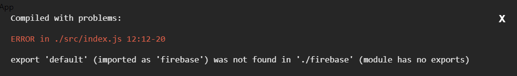 export 'default' (imported as 'firebase') was not found in './firebase' (module has no exports)