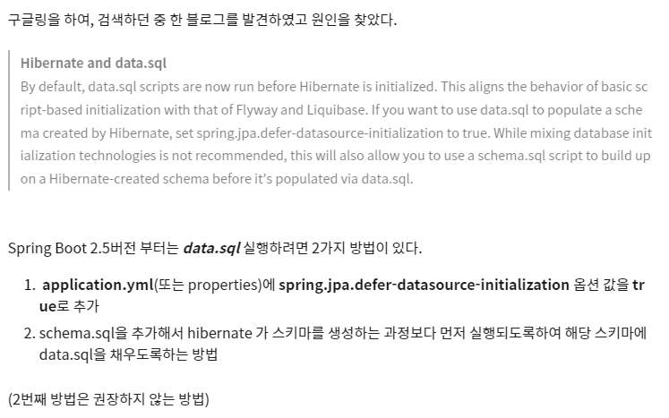 [ 스프링부트 / Spring Boot ] 2.5.x data.sql 문제 (h2, mysql)
