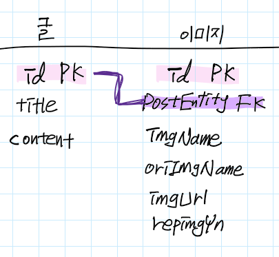 @JoinColumn(name="post_id") 로 PostEntity 테이블의 id 의 외래키로 지정했다.