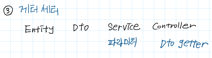 dto -> entity 를 한 후, repository 가 db 로 접근하는방법이다.