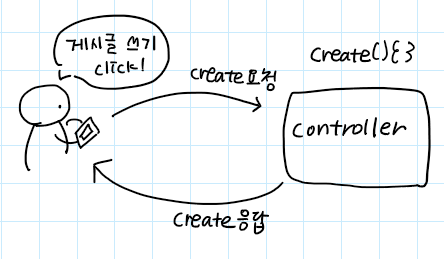 웨이터(Controller) 가 감치찌개를 손님(클라) 에게 갖다준다(response).