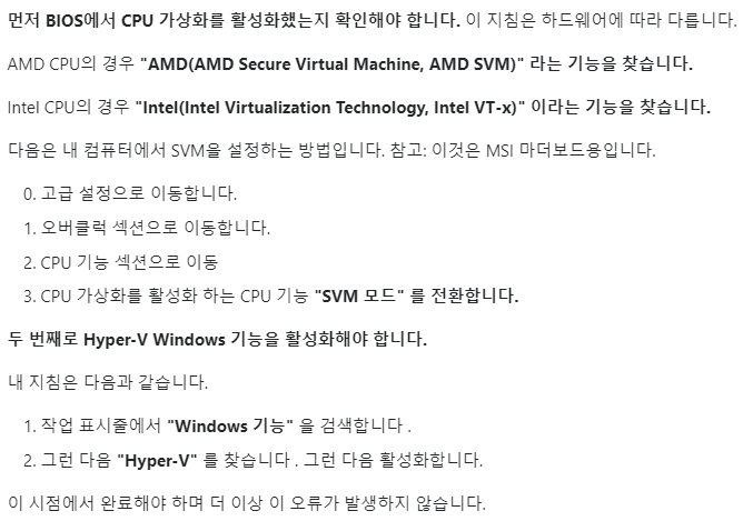 하이퍼바이저 어쩌고 를 클릭해준다음에 확인을 누른다.