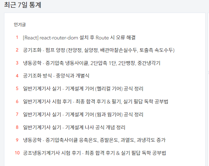 지금도 상위 인기글은 전부 다 기계공학 글이구만
