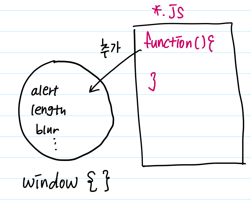 그래서 🤩전역🤩에다가 함수나 변수를 선언하면 window object 에 저장된다.