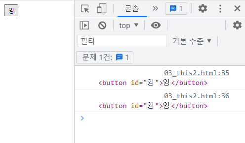 만들어진 버튼을 클릭하면 this 와 e.currentTarget 이 출력될 것이당