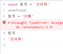 const는 값 재할당이 불가능