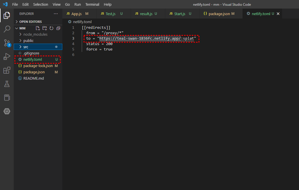 최상위경로에 netlify.toml 파일을 만들어주고