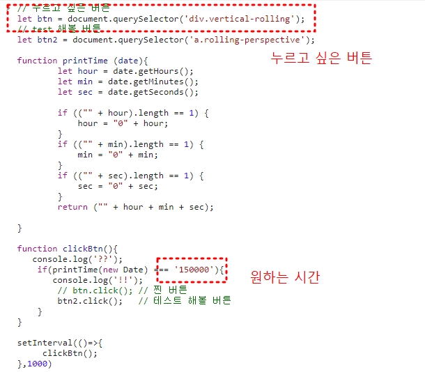 그래서 제가 친구를 위해서 3시가 되면 원하는 버튼을 누르는 코드를 만들었어요!