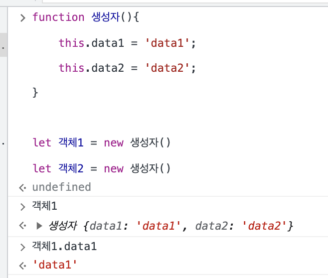 이제 객체1 과 객체 2 를 사용할 수 있게 됩니다.