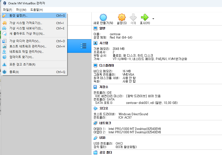외부망 / 내부망 네트워크 어댑터를 추가 설정 해야 하기 때문이다.