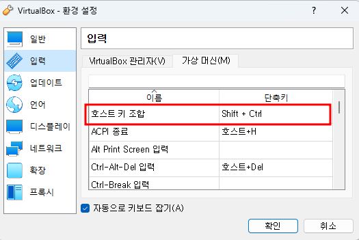 호스트 키 조합을 Shift + ctrl 로 변경해준다.