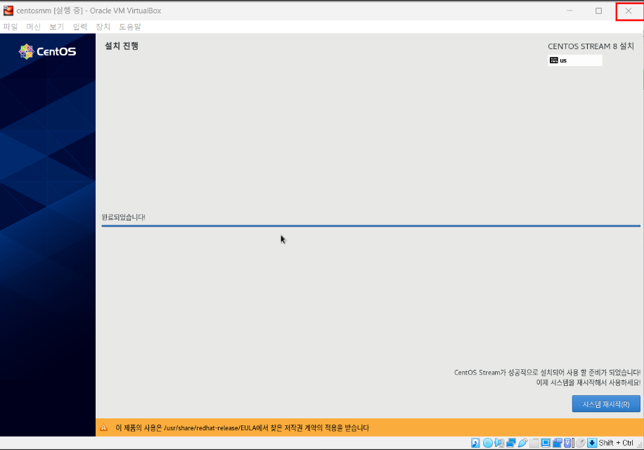 설치가 완료된 후에는 재시작 ㄴㄴ 창을 닫아준다.