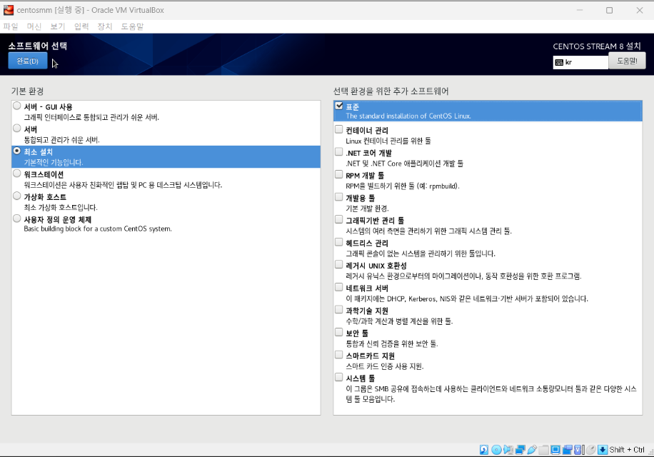최소설치 - 표준 선택 후 완료 버튼을 눌러준다.