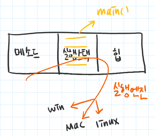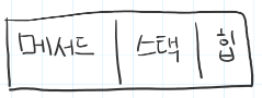 그 메모리 영역은 메서드영역, 힙영역, 스택영역으로 구성됨.