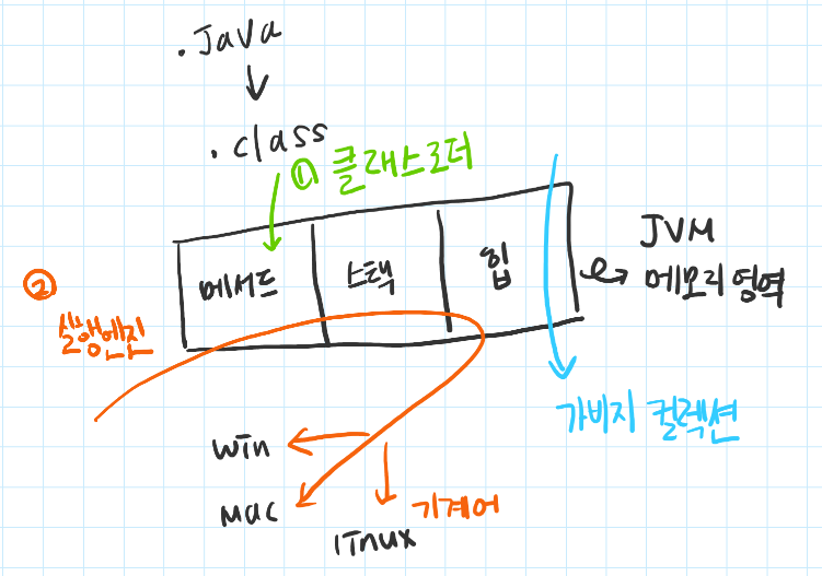 1. 컴파일된 자바를 클래스 로더를 통해 읽으면, 클래스 로더가 바이트코드를 검증하고 메모리에 올림
