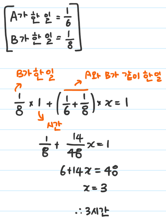 b가 혼자 일을 했을 때, a가 일한 시간으로 대입하는 것이죠