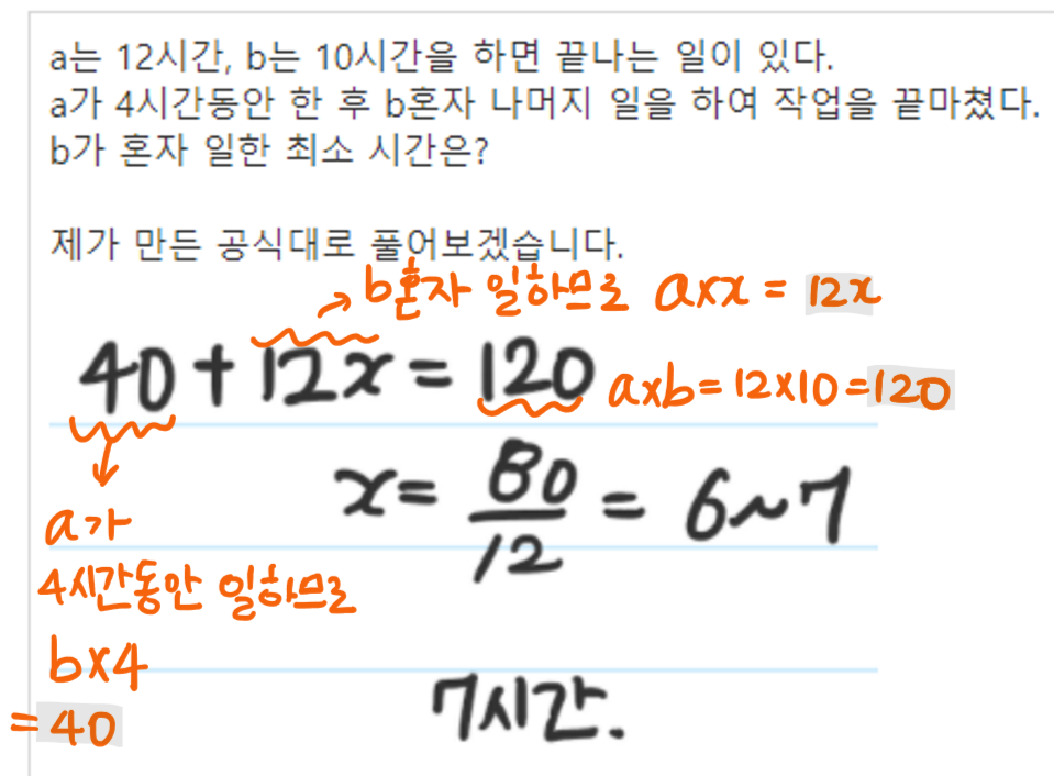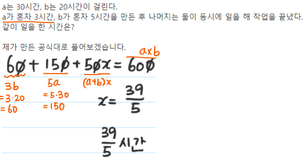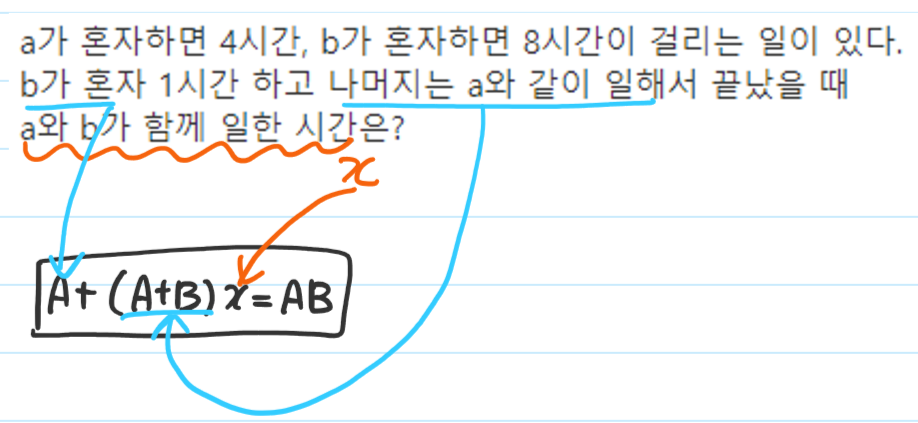 a가 일한 시간+(a가 일한 시간+b가 일한 시간)x=a가 일한시간*b가 일한 시간