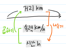 속력이랑 시간을 곱하면 거리가 나오고, 거리랑 시간을 나누면 속력이 나온다는 것은