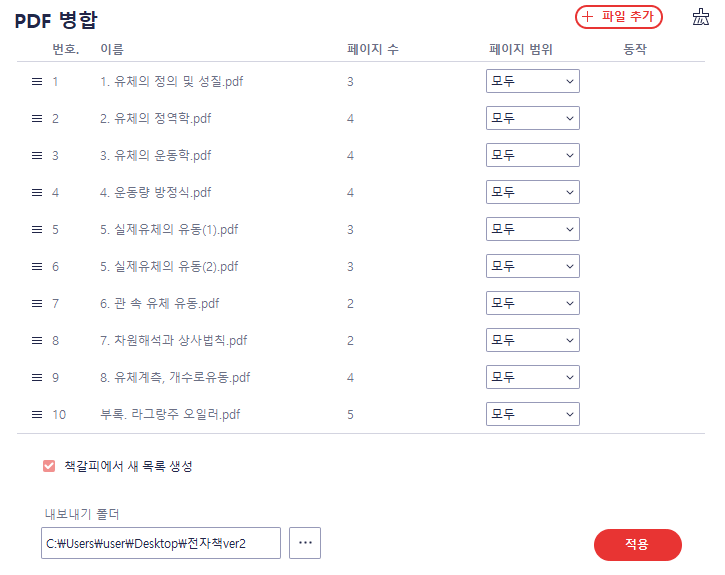 pdf 를 병합하고 목록을 만들어줍니다.