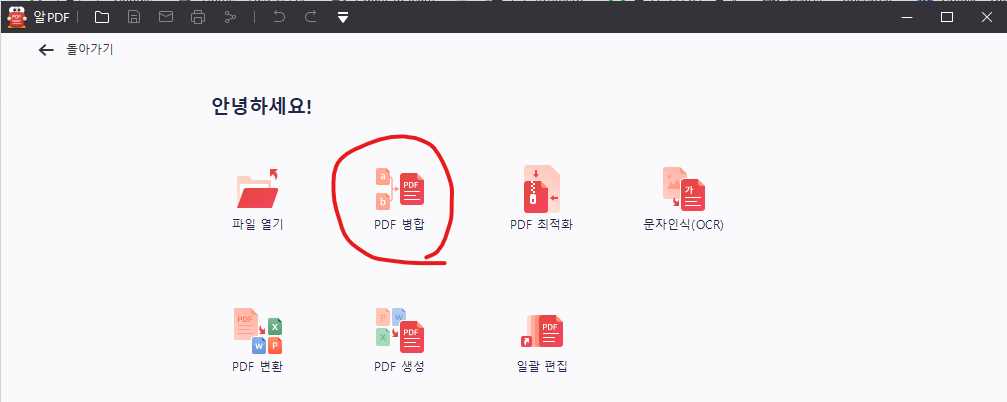 아까와 똑같이 알 pdf -> pdf 병합을 눌러서 진행하면 됩니다.